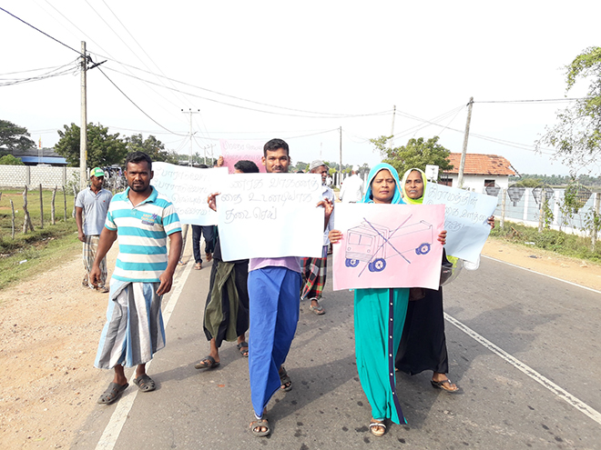 எனவே, சட்டவிரோத மணல் அகழ்வை உடனடியாக கட்டுப்படுத்த வேண்டும். மணல் அகழ்வுக்கு அனுமதிப்பத்திரம் வழங்கப்பட்டால், கனரக வாகனங்களின் போக்குவரத்துக்கு வேறு வழியைப் பயன்படுத்த வேண்டும் என்பதை இப்போது போராட்டம் மூலம் அவர்களின் கவனத்துக்குக் கொண்டு வருகின்றோம் எனத் தெரிவித்தனர்.