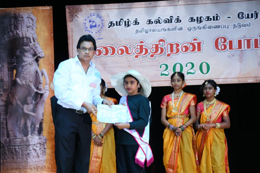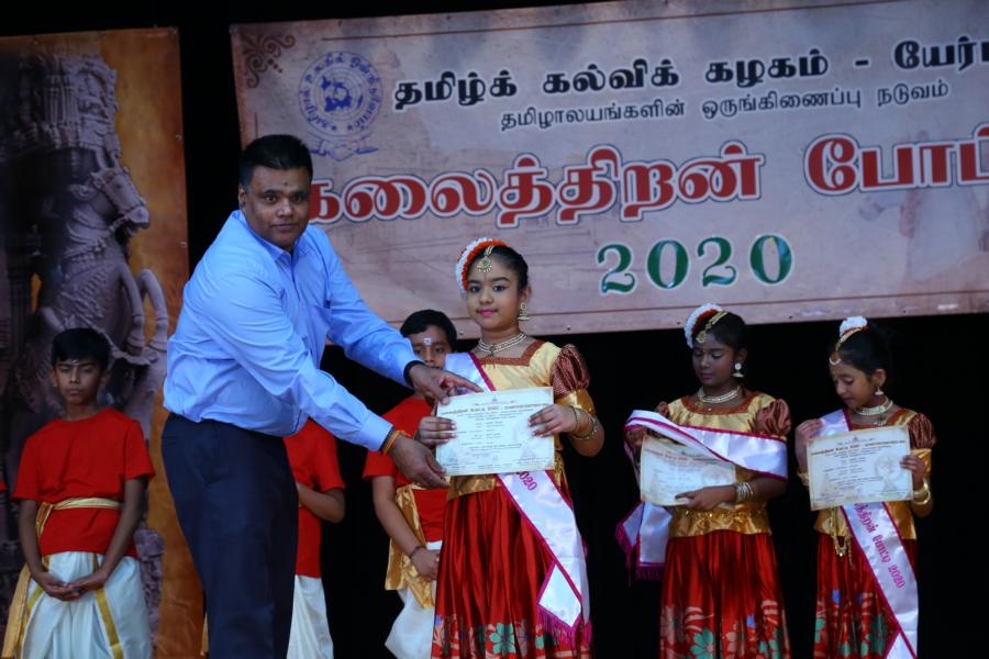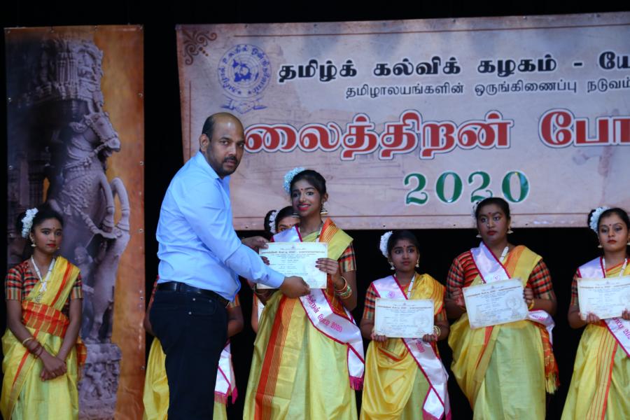 இங்கே மதிப்பளிப்புகள் இருநிலைகளாக அணிசெய்யப்படுகின்றமை குறிப்பிடத்தக்கதாகும். அதாவது, போட்டியாளர்கள் தமது நிகழ்வை அரங்காற்றியதும் உடனடியாகப் போட்டியிற் பங்குபற்றியமைக்காக பங்கேற்புப்பட்டி அணிவிக்கப்பட்டு பங்கேற்புச் சான்றிதழும் வழங்கப்படுவதோடு, மாநில மட்டத்திலே முதல் மூன்று நிலைகளைப்பெறும் வெற்றியாளருக்கு அதே நாளில் அதே அரங்கில் வைத்து சிறப்பான மதிப்பளிப்புகளை வழங்கும் அதேவேளை, இங்கு கலைத்திறனை வெளிப்படுத்தி வெற்றிகளைத் தமதாக்கி முதல் மூன்று நிலைகளைப் பெற்ற தமிழாலயங்கள் அறிவிக்கப்பட்டதோடு, அவர்களுக்கான மதிப்பளிப்புகள் வரும் ஏப்பிரல் மாதம் நடைபெறவுள்ள தமிழ்க் கல்விக் கழகத்தின் 30வது அகவை நிறைவு விழா அரங்குகளில் வழங்கப்பட உள்ளன.