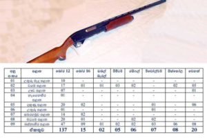 அதனடிப்படையில் போரா 12 துப்பாக்கிகள் 137, போரா 16 துப்பாக்கிகள் 15 மற்றும் வேறு வகையான துப்பாக்கிகள் அரசாங்கத்திடம் ஒப்படக்கப்பட்டுள்ளது.