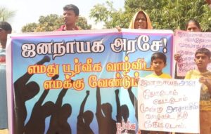 கேப்பாப்புலவு காணிவிடுவிப்புத் தொடர் போராட்டம் ஆரம்பிக்கப்பட்டு மூன்று வருடங்கள் நிறைவடைந்துள்ள நிலையில், இன்று (ஞாயிற்றுக்கிழமை) பாரிய போராட்டம் ஒன்றினை கேப்பாப்புலவு மக்கள் முன்னெடுத்திருந்தனர். இப்போராட்டத்தின்போதே அவர்கள் இவ்வாறு தெரிவித்துள்ளனர்.