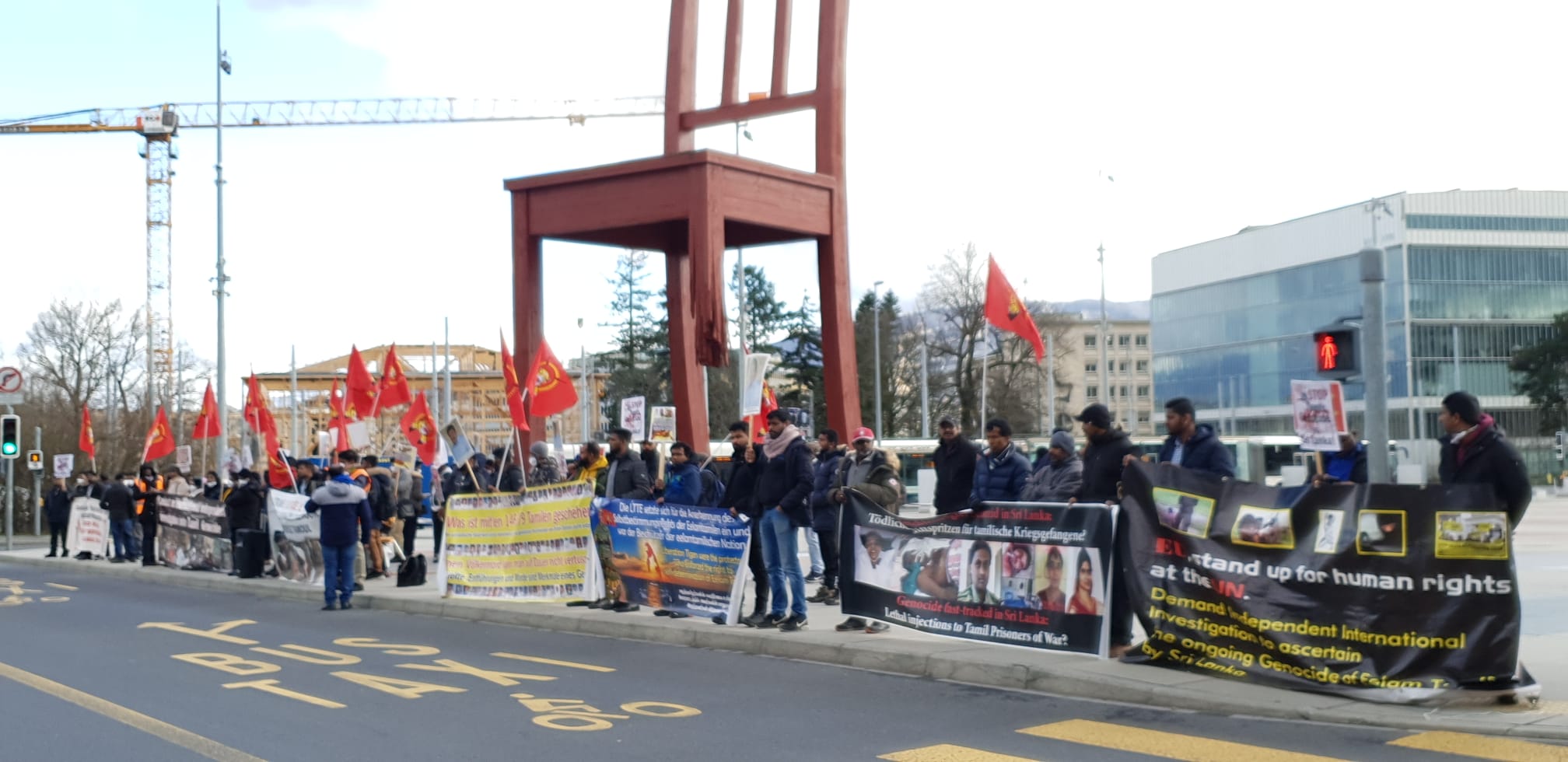 - கொறொனா வைரஸ் அச்சுறுத்தலுக்கு மத்தியிலும் இனப்படுகொலையை இடித்துரைக்க ஐ.நா. முன் அணிதிரண்ட தமிழ் மக்கள்.