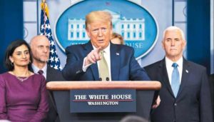 கொரோனா வைரசுடன் உலகமே போரில் ஈடுபட்டுள்ளது என்று அமெரிக்க ஜனாதிபதி டிரம்ப் கூறியுள்ளார்.அமெரிக்காவில் கொரோனா வைரசுக்கு 100 பேர் பலியானநிலையில், ஜனாதிபதி டொனால்டு டிரம்ப் நிருபர்களுக்கு பேட்டி அளித்தார். அவர் கூறியதாவது:-கண்ணுக்கு தெரியாத எதிரியுடன் நாம் போரில் ஈடுபட்டுள்ளோம். நாம் மட்டுமின்றி, உலகமே போரில் ஈடுபட்டுள்ளது. கண்ணுக்கு தெரியாததாக இருந்தாலும், உலகமே தெரிந்து கொண்ட ஒன்றாகி விட்டது. நிச்சயமாக அந்த எதிரியை வீழ்த்துவோம். அதற்காக எல்லா வளங்களையும் பயன்படுத்துவோம்.