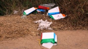 விமான நிலையத்தில் வழங்கப்படும் உணவு பொதிகள் அடைத்துவரும் கழிவுப் பெட்டிகள் கிளிநொச்சி குளத்தின் வீதிகளின் இருமருங்கிலும் வீசப்பட்டுள்ளதை அவதானிக்கக் கூடியதாக உள்ளதாக எமது பிராந்திய செய்தியாளர் தெரிவித்துள்ளார்.