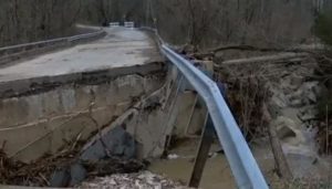 அமெரிக்காவின் இன்டியானா மாகாணத்தில் கடந்த வெள்ளிக்கிழமை சக்தி வாய்ந்த புயல் தாக்கியது. மணிக்கு பல மைல் வேகத்தில் புயல் காற்று வீசியதோடு பேய் மழையும் கொட்டித்தீர்த்தது. இதனால் அங்குள்ள பல்வேறு நகரங்களில் வெள்ளம் கரைபுரண்டோடுகிறது. இந்த நிலையில் அங்குள்ள பிராங்கிளின் நகரில் நேற்று முன்தினம் பாலம் ஒன்று திடீரென இடிந்து விழுந்தது. இதில் 2 வாகனங்கள் வெள்ளத்தில் அடித்துச் செல்லப்பட்டன.