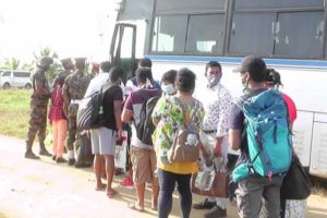 புனாணை மட்டக்களப்பு பல்கலைக் கழக கொரோனா தடுப்பு முகாமில் இருந்து நான்கு பஸ்கள் மூலமாக 125 பேரும், மியான்குளம் இராணுவ தடுப்பு முகாமின் கொரோனா தடுப்பு முகாமில் இருந்து ஒரு பஸ் மூலமாக 18 பேருமாக 143 பேர் இன்று காலை 08.00 மணியளவில் நிட்டம்புவ, கொழும்பு, குருநாகல், காலி, மாத்தறை போன்ற பிரதேசங்களுக்கு அனுப்பி வைக்கப்பட்டுள்ளனர்.