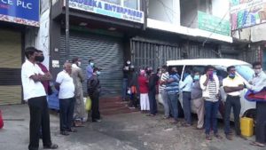 சதொச நிலையங்கள், சுப்பர் மார்க்கெட்டுகள், மொத்த மற்றும் சில்லறைக் கடைகளில் மக்கள் அணிவகுத்து நின்று, நீண்டநேரம் காத்திருந்து அத்தியவசியப் பொருட்களைக் கொள்வனவு செய்தனர்.