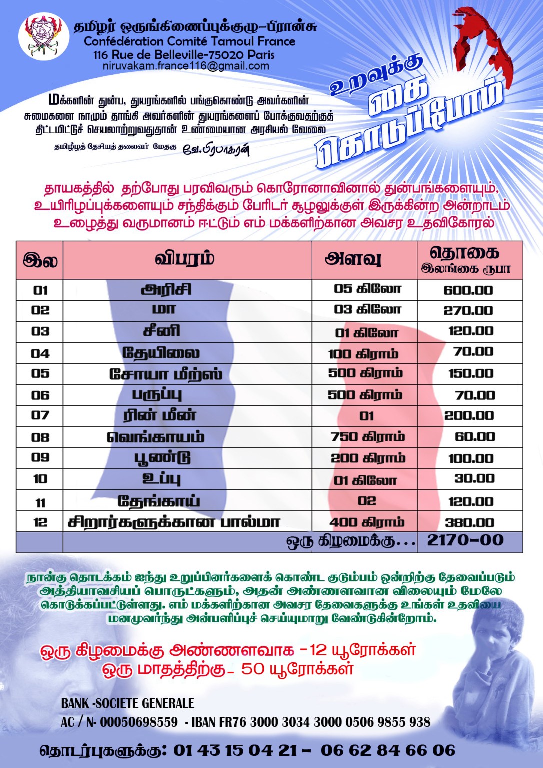பிரான்சு நாட்டிலிருந்து பல்வேறு உதவிகள் தாயகம் நோக்கி செயற்படுத்தப்பட்டே வருகின்றது.