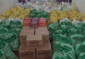 5 கிலோ அரிசி, 5 கிலோ கோதுமை மா, பால்மா, பருப்பு, ரின்மீன், தேங்காய் உட்பட அத்தியாவசியப் பொருட்கள் பொதியில் உள்ளடக்கப்பட்டுள்ளன.