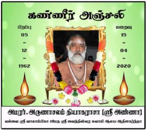 வல்வெட்டித்துறை சிவன் கோயில் அறங்காவலரும் தமிழீழ தேசிய தலைவரது சகோதரனுமான அருணாசலம் தியாகராஜா கடந்த 15ம் திகதி காலமாகியுள்ளார்.