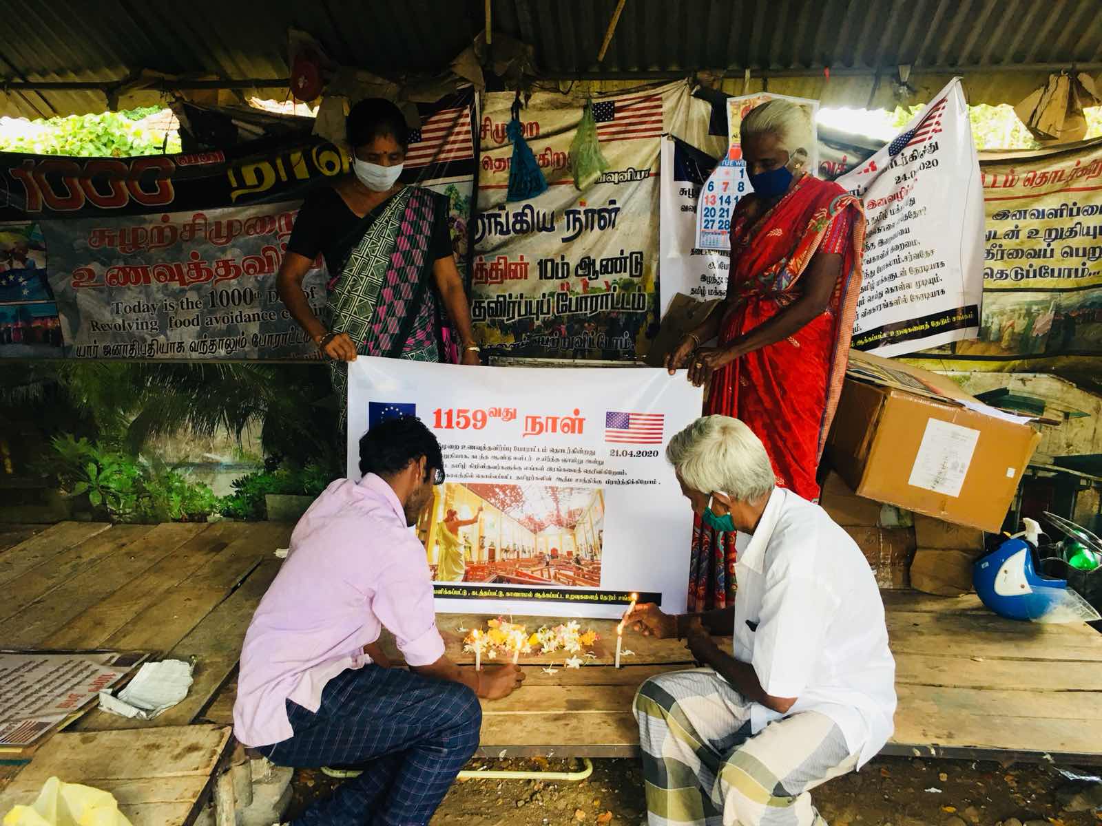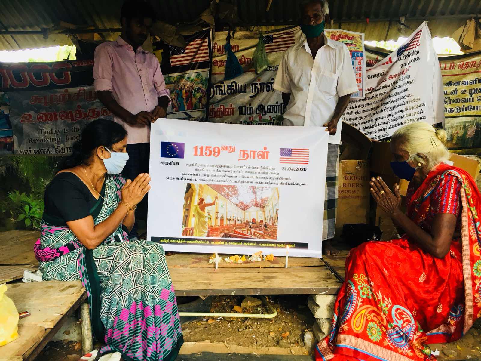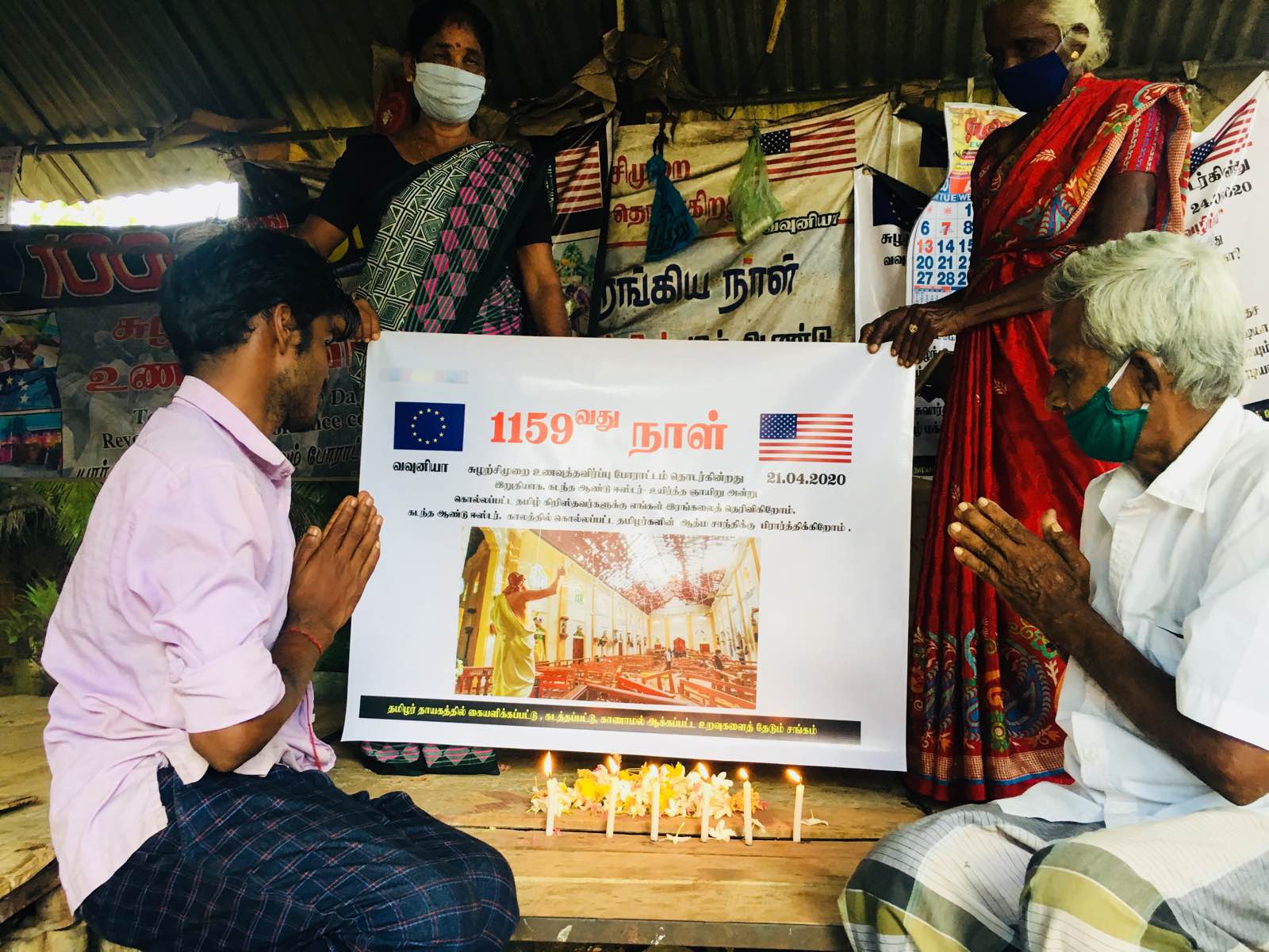கடந்த ஆண்டு இலங்கையில் இடம்பெற்ற உயிர்த்த ஞாயிறு குண்டு வெடிப்பில் உயிரிழந்த உறவுகளுக்கு, வவுனியாவில் ஆயிரத்து நூற்று ஐம்பது நாட்கள் கடந்தும் சுழற்சி முறையிலான உணவு தவிர்ப்பு போராட்டத்தை நடத்திவரும் கையளிக்கப்பட்டு கடத்தப்பட்டு காணாமல் ஆக்கப்பட்ட உறவுகளைத் தேடிக்கண்டறியும் குடும்பங்களின் சங்கத்தினர் நேற்று 21.04.2020 செவ்வாய்க்கிழமை அன்று தமது 1159 ஆவது போராட்ட நாளில் அஞ்சலி செலுத்தியுள்ளனர்.