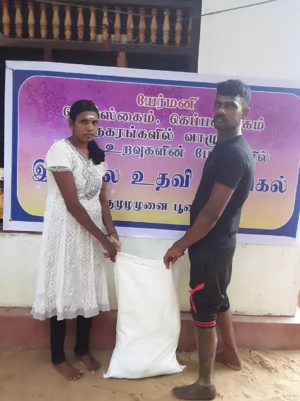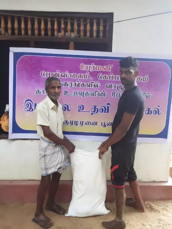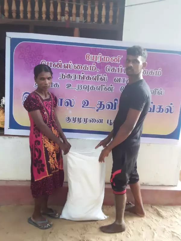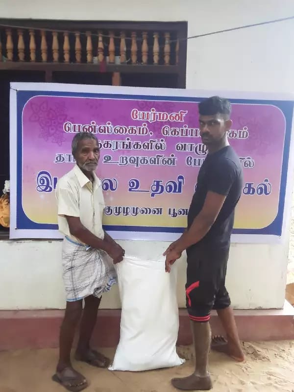 இதன் தொடர்ச்சியாக, யேர்மனியின், கெசன் மாநிலத்திற்கு உட்பட்ட பென்ஸ்கைம், கெப்பன்கைம் ஆகிய நகரங்களில் வாழும் எம் உறவுகளால், கிளிநொச்சி மாவட்டத்தின் பூநகரி பிரதேச செயலர் பிவுக்கு உட்பட்ட, குமுழமுனை கிராமத்தில் வாழும் வறிய நிலையுடைய நூறு (100) குடும்பங்களுக்கு, நேற்றைய தினம் (22.04.2020) ரூபா மூன்று இலட்சம் (300,000/=) பெறுமதியான உலர் உணவுப் பொதிகளை வழங்கி வைத்துள்ளனர்.