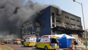 தென்கொரியாவில் தொழிலாளர்கள் வேலை செய்துவந்த ஒரு சேமிப்பு கிடங்கு கட்டிடத்தில் ஏற்பட்ட திடீர் தீ விபத்தில் சிக்கி 38 பேர் உயிரிழந்தனர்.