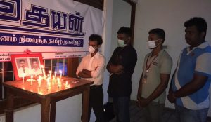 உதயன் பத்திரிக்கை நிறுவனத்தில் கொல்லப்பட்ட ஊடகப் பணியாளர்களுக்கான அஞ்சலி நிகழ்வுகள் நேற்று (சனிக்கிழமை) மாலை 6.10 மணிக்கு நடைபெற்றது. அதன்போது அவர்களது திருவுருவப் படத்திற்கு மலரஞ்சலி செலுத்தப்பட்டு சுடரேற்றி அஞ்சலி செலுத்தப்பட்டது.