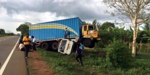 வீதியில் பயணித்த கொள்கலன் பொருத்திய பாரவூதியும் ஹைஏஸ் வானும் மோதியதில் இந்த விபத்து ஏற்பட்டது.வான் மீது பராவூர்தி ஏறி நின்றது. இந்த விபத்து இன்று மாலை இடம்பெற்றது.ஊரடங்குச் சட்டம் நடைமுறையில் உள்ள நிலையில் வீதியில் மக்கள் நடமாட்டமற்றுக் கிடந்தது. ஹைஏஸ் வானின் மேலேறிய பாரவூர்தியை மீட்டெடுக்க சுமார் ஒரு மணி நேரம் போராட வேண்டியிருந்தது என்று பொலிஸார் குறிப்பிட்டனர்.