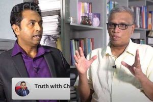 சுமந்திரன்: அரசு என்பது 3 பிரிவுகள் உள்ளன. இந்த முன்னால் இருக்கும் டிரைபோட் (கமரா ஸ்டான்ட்) போல நிர்வாகம் – நீதி மற்றும் நாடாளுமன்றம். அதில் ஒன்று விழுந்தாலும் நாடே விழுந்துவிடும் அதனால் தான் அரசமைப்பிலேயே சொல்லப்பட்டிருக்கிறது நாடாளுமன்றம் இல்லாது ஆகக் கூடியதாக மூன்று மாதம் மட்டுமே இருக்க முடியும். அப்படியான ஒரு கடும் சட்டம் உண்டு. அதற்குள் ஓர் அவசர நிலை உருவானால் உடனடியாக நாடாளுமன்றத்தைக் கூட்ட வேண்டும் எனவும் அங்கே குறிப்பிடப்பட்டு உள்ளது.