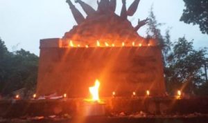 வட தமிழீழம் , யாழ் பல்கலைக்கழகத்தில் சிறிலங்கா பொலிஸின் தடைகளை தாண்டி முள்ளிவாய்க்கால் நினைவேந்தல் தூபியில் மாணவர்கள் சுடரேற்றி வணக்கம் செலுத்தினர்.