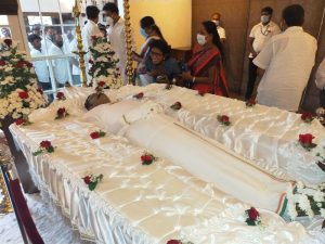 அமைச்சர்கள், முன்னாள் நாடாளுமன்ற உறுப்பினர்கள், ஆளும் மற்றும் எதிர்க்கட்சிகளை சேர்ந்த உறுப்பினர்கள், மதத் தலைவர்கள், தொழிற்சங்கவாதிகள், பொது மக்கள் என பலரும் சுகாதார நடைமுறைகளைப் பின்பற்றி அஞ்சலி செலுத்தி வருகின்றனர்.