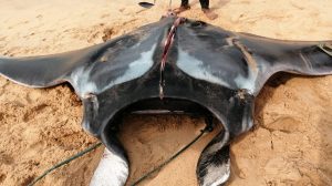 தற்போது ஏற்பட்டுள்ள பாரிய கடல் கொந்தளிப்பு காரணமாக குறித்த பாரிய திருக்கை மீன் கடல் அலைகளினால் கரைக்கு அடித்து வரப்பட்ட நிலையில் அப்பகுதி மீனவர்கள் இம்மீனைப் பிடித்துள்ளனர்.