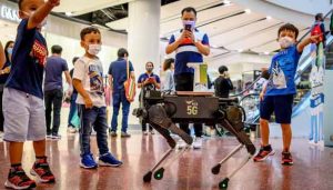 இந்த ரோபோ நாய், உற்சாகமாக ஒரு அசல் நாய் போலவே வலம் வருவது, அங்கு வருகிற குழந்தைகள் தொடங்கி பெரியவர்கள் வரையில் அனைவரின் கவனத்தையும் கவர்வதாக அமைந்துள்ளது. இது 5-ஜி தொழில்நுட்பத்தால் இயக்கப்படுகிறது.