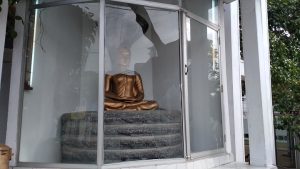 யாழ். நாக விகாரை பிரதான வாயிலுக்கு அருகில் வீதியோரமாக வழிபாட்டுக்கு வைக்கப்பட்டிருந்த புத்தர் சிலையின் கண்ணாடி கூடு இனம் தெரியாத நபர்களினால் சேதமாக்கப்பட்டுள்ளது.