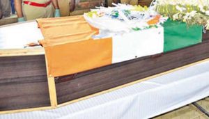 அதன் பின்னர் வீட்டிற்கே அருகே உள்ள சொந்த நிலத்தில் பழனியின் உடலுக்கு முப்படை வீரர்கள் அஞ்சலி செலுத்திய பின்னர் முழு ராணுவ மரியாதையுடன் அடக்கம் செய்யப்பட்டது.