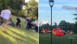 அப்போது அங்கு வந்த 25 வயது நிரம்பிய பயங்கரவாதி தான் மறைத்து வைத்திருந்த கத்தியை கொண்டு பூங்காவில் ஓய்வு எடுத்துக் கொண்டிருந்தவர்களை கண்மூடித்தனாக குத்தி கொலைவெறி தாக்குதல் நடத்தினான்.