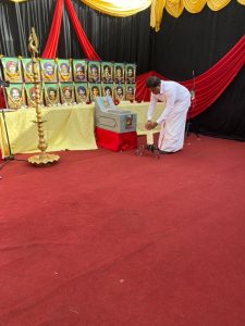 அகவணக்கத்தினை தொடர்ந்து மலர்மாலையினை திருமதி நளினி சிவகுமார் அணிவித்ததைத் தொடர்ந்து மலர்வணக்கம், சுடர்வணக்கம் இடம்பெற்றது.