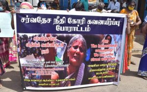 சர்வதேசமே வீதியில் கண்ணீருடன் நாம், எமக்கான நீதியை நாம் பெற ஏதுவாக இலங்கையை சர்வதேச நீதிமன்றிற்கு பாரப்படுத்து போன்ற கோரிக்கையை முன்வைத்து மக்கள் போராட்டத்தில் ஈடுபட்டனர்.