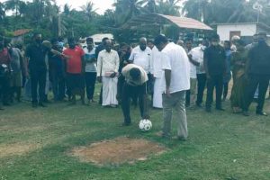 அதை அடுத்து ராஜ கிராமத்தில் உள்ள கரவை சுடர் உதைபந்தாட்ட வீரர்களுடன் இணைந்து கால்பந்தாட்டத்தில் ஈடுபட்டார்.