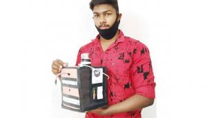 இவர் கொரோனா காலத்தில் அனைத்து தரப்பினரும் பயன்படுத்தி வரும் சானிடைசரை எளிதாக கையாளும் வகையில் தானியங்கி கருவி ஒன்றை கண்டுபிடித்துள்ளார். இந்த கருவியிலுள்ள சிறிய குழாய் அருகில் கையை நீட்டினால் 5 முதல் 6 மில்லி வரையிலான சானிடைசர் கொட்டும். இதன் மூலம் தேவையில்லாமல் சானிடைசர் விரையம் ஆவது தடுக்கப்படும். கருவியில் சானிடைசர் அளவை காணவும், எளிதாக நிரப்பும் வகையில் கருவியை வடிவமைத்துள்ளார்.