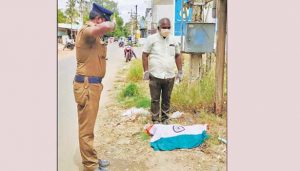 கோவை அருகே மின்சாரம் தாக்கி இறந்த மயிலுக்கு, போலீசார் தேசிய கொடி போர்த்தி மரியாதை செலுத்தினர்.கோவை திருச்சி ரோட்டில் இருந்து எஸ்.ஐ.எச்.எஸ். காலனிக்கு செல்லும் வழியில் ஒரு பெட்ரோல் விற்பனை நிலையம் உள்ளது. இந்த பகுதியில் நேற்று ஒரு மயில் பறந்து வந்தது. அந்த மயில் அங்கிருந்த ஒரு டிரான்ஸ்பார்மரில் உள்ள உயர் அழுத்த மின் கம்பியில் அமர்ந்தது. அப்போது திடீரென்று அந்த மயில் மீது மின்சாரம் பாய்ந்தது. இதனால் அந்த மயில் கருகி இறந்தது.