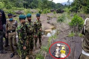 கொத்மலை ஒயாவிற்கு நீராட சென்றவர்கள் வெடிபொருட்கள் இருப்பதை கண்டு நாவலபிட்டி விசேட அதிரடி படையினருக்கு வழங்கப்பட்ட தகவலுக்கமைய அமைய ( 07) மேற்படி வெடிபொருட்களை மீட்கப்பட்டுள்ளதுடன் நாவலபிட்டி பொலிஸாருக்கு அறிவித்துள்ளனர்