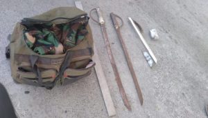 இதன்போது வீட்டினுள் இருந்தும் வீட்டின் பின் பகுதியில் உள்ள வாழை தோட்டத்தில் இருந்தும் கைக்குண்டு ஒன்று, வாள்கள் மூன்று, மோட்டார் சைக்கிள்கள் இரண்டு, இராணுவச் சீருடைகள், தேசிய அடையாள அட்டைகள் உள்ளிட்டவை கைப்பற்றப்பட்டன.