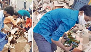 டாஸ்மாக் கடைகளுக்கு கொண்டு சென்றபோது, டயர் வெடித்து நடுரோட்டில் மினி லாரி கவிழ்ந்து விபத்துக்குள்ளானது. அதில் இருந்த மதுபாட்டில்களை ‘குடிமகன்கள்’ அள்ளிச்சென்றதால் பரபரப்பு ஏற்பட்டது.