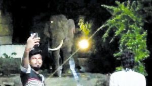 வாலிபர்கள் விபரீதம் அறியாமல் யானை அருகில் நின்று ‘செல்பி’ எடுத்துக்கொண்டது பொதுமக்கள் மற்றும் விலங்கின ஆர்வலர்களிடையே அதிர்ச்சியை ஏற்படுத்தி உள்ளது.