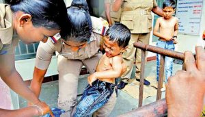 பின்னர் குழந்தைகளின் உடலில் தண்ணீரை ஊற்றி ஆசுவாசப்படுத்தினர். இதைத்தொடர்ந்து குழந்தைகளுக்கு வேறு உடைகளை அணிவித்தனர். இந்தநிலையில் அம்ஜத் உசேன் பழனி தாலுகா போலீஸ் நிலையத்துக்கு அழைத்து செல்லப்பட்டார். அங்கு அவரிடம் போலீசார் விசாரணை நடத்தினர். பின்னர் அம்ஜத் உசேனை போலீசார் எச்சரித்து அனுப்பி வைத்தனர். இந்த சம்பவம் பழனி பகுதியில் பரபரப்பை ஏற்படுத்தியது.