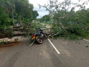 இதேவேளை முறிந்து வீழ்ந்த மரங்களை அவ்விடத்தில் ஒன்றுகூடிய இளைஞர்கள் உடனடியாக அகற்றியிருந்தனர்.
