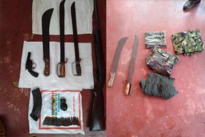 அதற்கு மேலதிகமாக 3 வாள்கள், இராணுவ சீருடை ஒன்று மற்றும் இராணுவ மேலாடைகள் மூன்றும் கைப்பற்றப்பட்டுள்ளதாக தெரிவிக்கப்படுகின்றது.