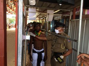 அதேபோல், ஆலயத்திற்கு வெளியிலும் பொலிஸாரினால் சமூக இடைவெளியைப் பின்பற்றி ஆலய உற்சவத்தை தரிசிக்க அனுமதி வழங்கப்பட்டது. ஆள் அடையாளத்தை உறுதிப்படுத்தும் ஆவணத்தை கொண்டுவராதவர்கள் ஆலயத்திற்குள் செல்ல அனுமதிக்கப்படவில்லை.