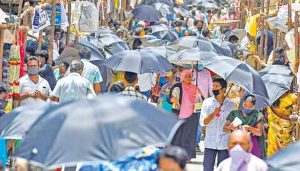 சென்னை பூக்கடை பஜாரில் சமூக இடைவெளியை கடைப்பிடிக்க நூதன முறையாக குடைகளை வழங்கி வியாபாரிகள் அசத்தினர்.