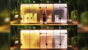 தலைநகர் டோக்கியோவின் வணிகப் பகுதியான ஷிபூயாவில் உள்ள இரண்டு பூங்காக்களில் கண்ணாடி சுவர்களால் ஆன, அழகான விளக்கு போல ஒளிரும் வெளிப்படையான பொது கழிப்பறைகள் நிறுவப்பட்டுள்ளன. வெளியில் இருந்து பார்க்கும்போது இந்த கழிப்பறைகள் வெளிப்படையாக தெரியும். யாரேனும் ஒரு நபர் உள்ளே நுழைந்தால் அது ஒளிபுகாதவாறு மாறும் என்பதுதான் இதன் சிறப்பு அம்சம்.