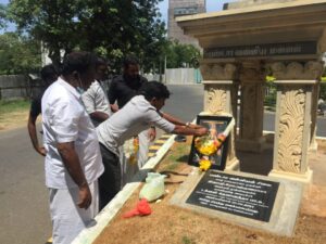 இதன்போது அங்குள்ள உருவச்சிலைக்கு முன்பாக அம்மன்னனின் உருவப்படம் வைக்கப்பட்டு, அதற்கும் உருவச் சிலைக்கும் மாலை அணிவித்து, மலர்களை தூவியும் அஞ்சலி செலுத்தப்பட்டது.