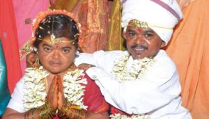 இவருக்கும் பொன்னை அருகே உள்ள கிருஷ்ணாபுரம் பகுதியை சேர்ந்த 3 அடி உயரமுள்ள லட்சுமி (29) என்பவருக்கும் சோளிங்கர் மூங்கிலேரி ராமபுரம் பகுதியில் உள்ள, ஆறுபடை முருகன் கோவிலில் உறவினர்கள், நண்பர்கள் மத்தியில் எளிய முறையில் திருமணம் நடைபெற்றது.