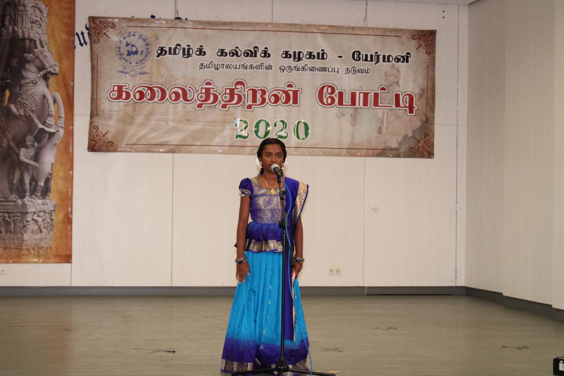 கொரோனா தொற்றுநோயின் பாதிப்பினால் கடந்த ஆறு மாதங்களாகத் தமிழாலயங்களின் செயற்பாடுகள் முடங்கியிருந்த நிலையில் 12.09.2020 சனிக்கிழமை வடமத்திய மாநிலத்துக்கான கலைத்திறன் போட்டி திட்டமிட்டவாறு 09.30 மணிக்கு Arnsberg நகரில் ஆரம்பித்தது.