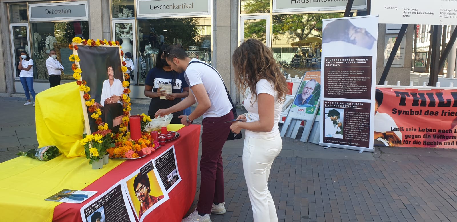 யேர்மனிவாழ் மக்களுடன் இளையவர்கள் இணைந்து திலீபனின் தியாக வேள்வியை யேர்மனிய நகரமத்திக்கு எடுத்து வந்தனர். அந்த வகையில் இன்று ஆறாவது நகரமாக வூப்பெற்றால் நகரம் தெரிவு செய்யப்பட்டு அந்நகரத்தின் மத்தியில் திலீபனுக்கு மாலை சூட்டி, மலர் தூவி, சுடர் ஏற்றினார்கள். இவர்களுடன் அந்நகரத்தின் நடைபாதைகளில் வந்த வேற்றின மக்களும் இணைந்து தியாக தீபத்திற்கு மலர் தூவினார்கள். யேர்மனிய மொழியினில் திலீபனின் தியாக வேள்ளி விபரமாக எழுதப்பட்டிருந்தது. அதைக் கண்ணுற்றவர்களுக்கு இளையவர்கள் விளக்கமளித்தார்கள்.