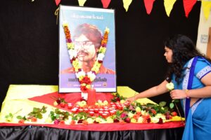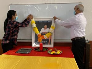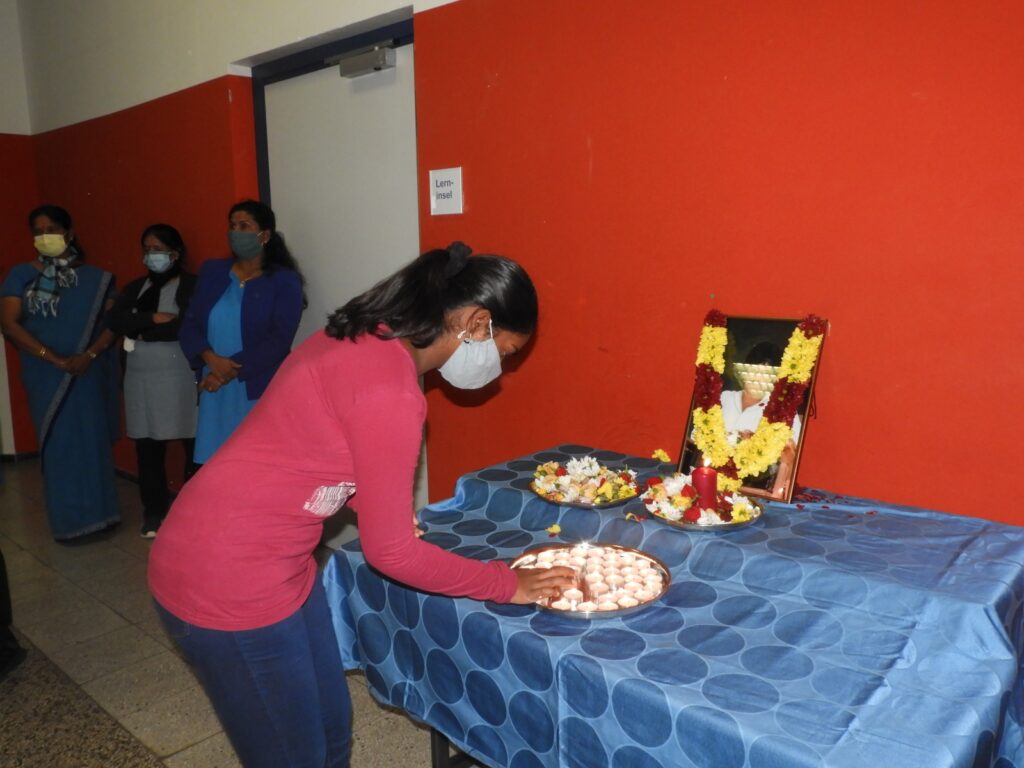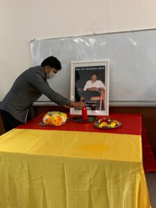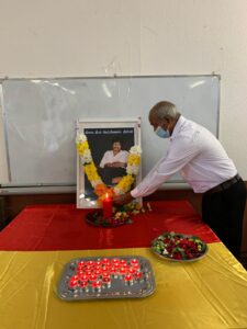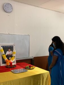 திரு.கு.நந்தகுமார் அவர்கள் ஈகைச்சுடர் ஏற்றியபின்னர் மாணவர்களும் பெற்றோர்களும் மலர் வணக்கமும் சுடர் வணக்கமும் செலுத்தி வழிபாடு நடைபெற்றது.