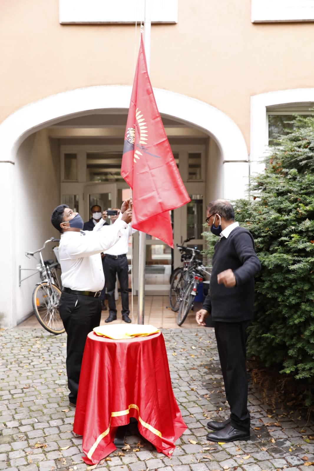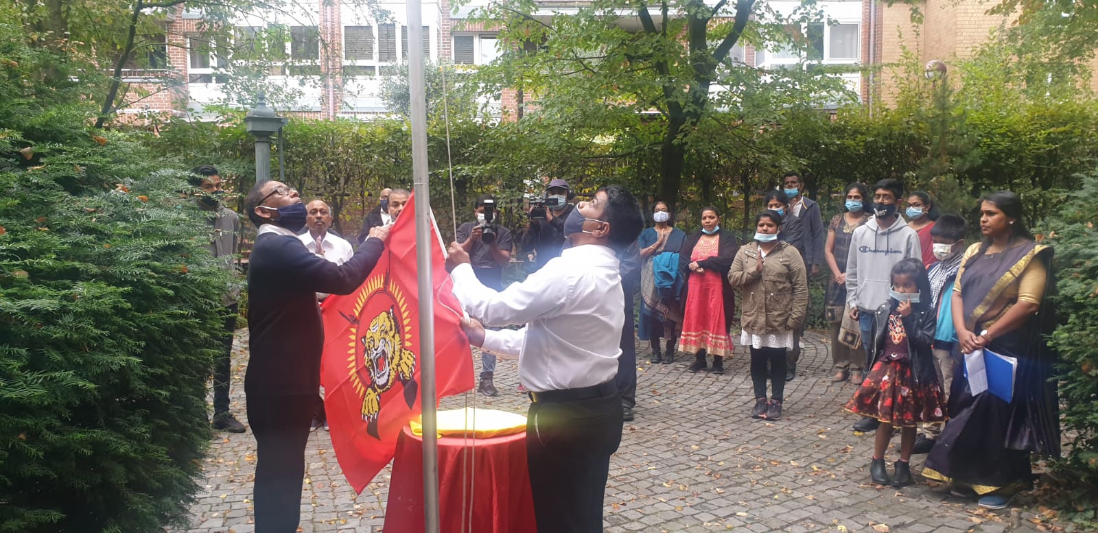 தமிழீழத் தேசியக் கொடியினை யேர்மனி தமிழர் விளையாட்டுக் கூட்டமைப்பின் பொறுப்பாளர் திரு. குமார் அவர்கள் ஏற்றிவைத்தார்.