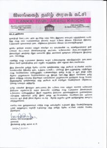 இது தொடர்கான இன்று (ஞாயிற்றுக்கிழமை) தமிழரசுக் கட்சி விடுத்துள்ள அறிக்கையில்,