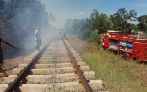 நேற்று (ஞாயிற்றுக்கிழமை) மாலை வவுனியா – நவகமவில் வயல் பகுதியில் தீ பரவியுள்ளது. இத் தீயானது தண்டாவாளம் வரை தீப்பிடித்திருந்தது. வடக்கு பகுதிக்கான தண்டவாளங்களுக்கு அருகேயுள்ள பாலங்களை சீர்செய்து வருகின்றனர். நவகம பாலம் வேலை செய்வதற்காக பாலத்திற்கு அருகே வைத்திருந்த மரங்களும் தீக்கிரையாகியிருந்தன.
