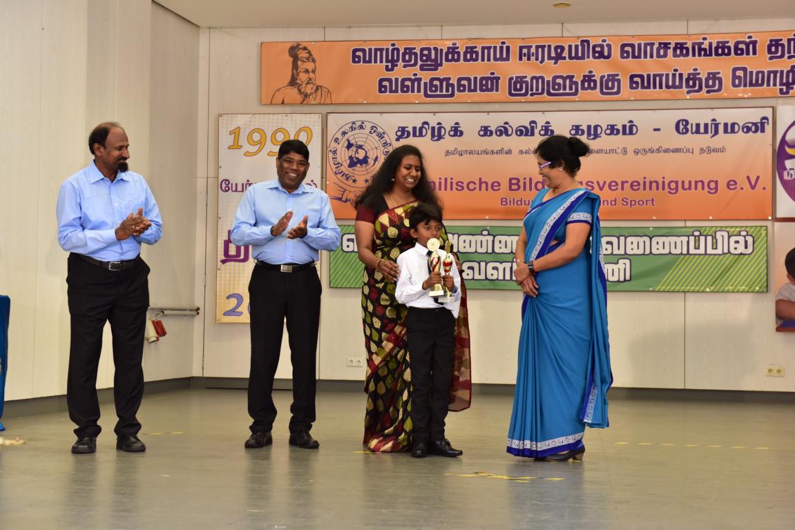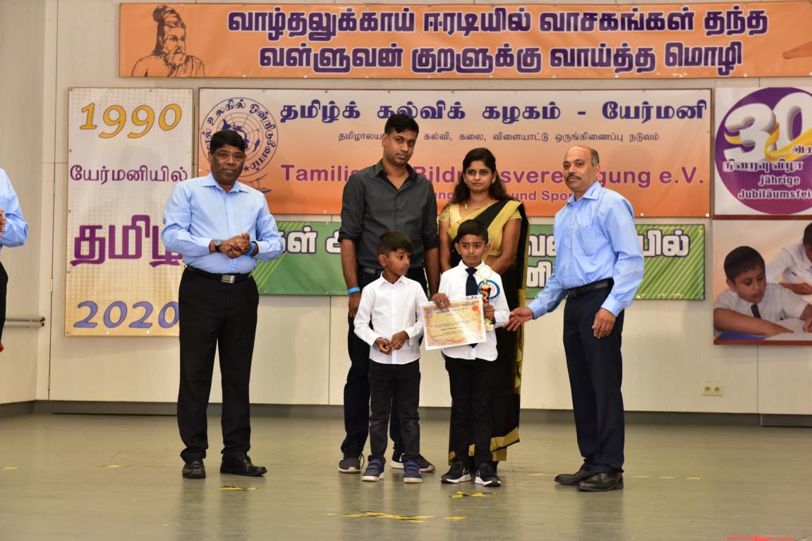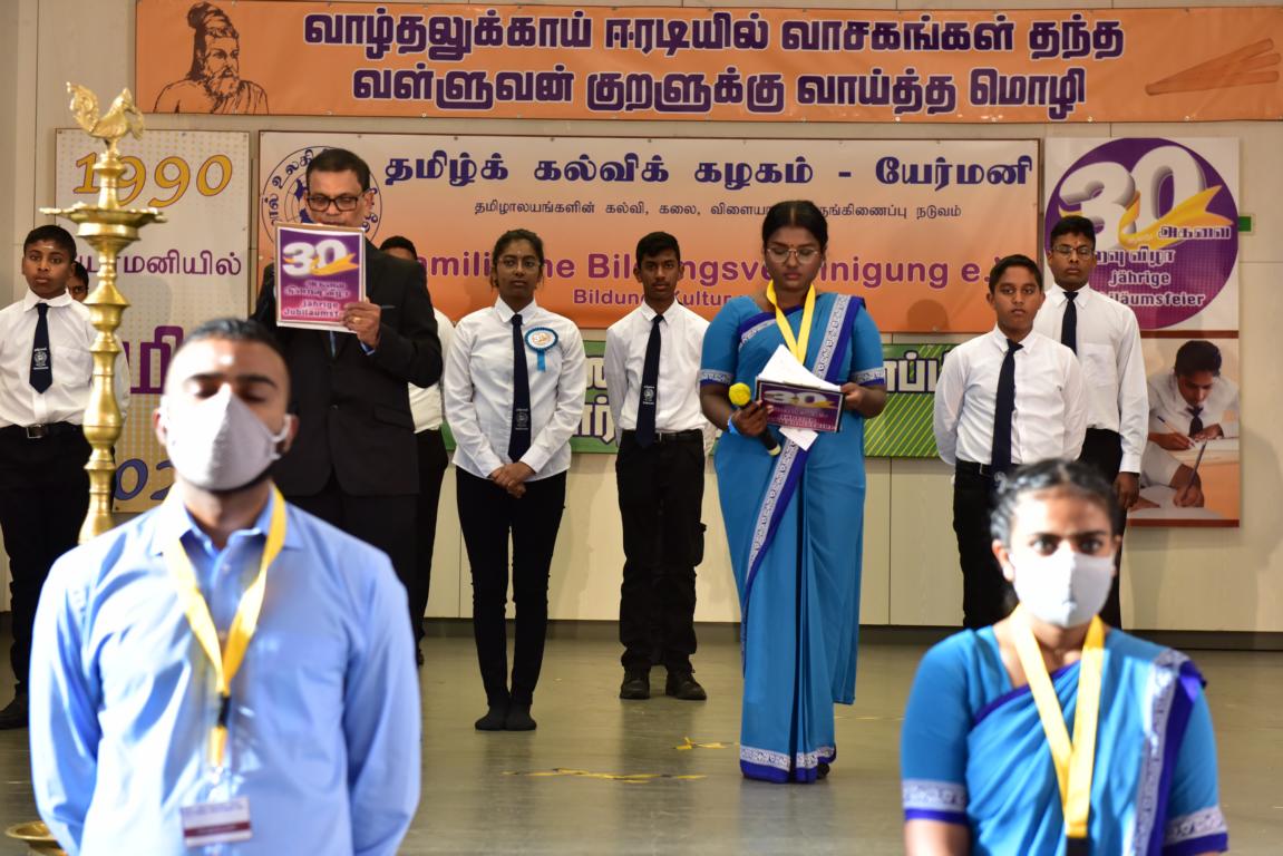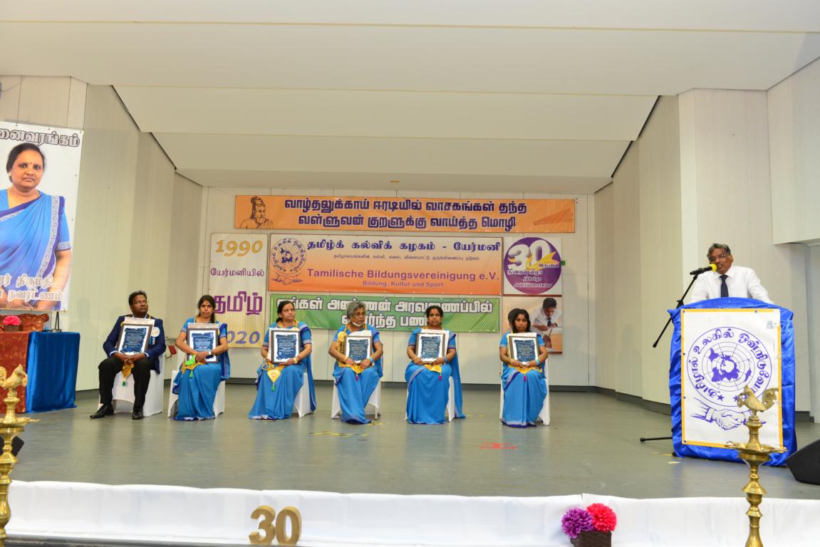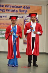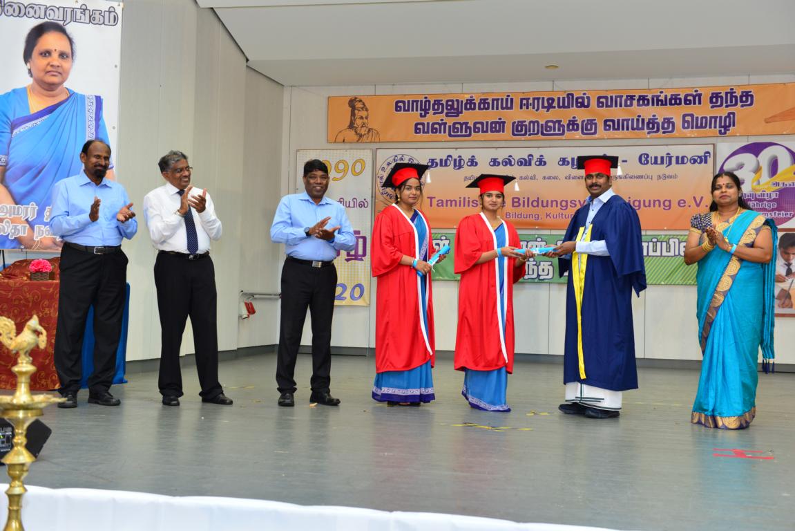 விழாவின் நிறைவில் 12ஆம் ஆண்டுவரை தமிழாலயங்களில் கல்வி பயின்று, வெளியேறும் மாணவர்களுக்கான சிறப்பான மதிப்பளிப்பு நிகழ்வும் நடைபெற்றது. இதுவரை காலமும் அந் நிகழ்வை நெறிப்படுத்தி மதிப்பளித்து வந்த பேராசிரியர்கள் திரு.திருமதி. சண்முகதாஸ் அவர்களின் போக்குவரத்து இடையூறினால் அப்பணியை சுவீடன் நாட்டில் இருந்து வருகைதந்திருந்த பேராசிரியரும் ஆய்வாளருமான திரு விஐய் அசோகன் அவர்கள் பன்னிரொன்டாம் ஆண்டுடை நிறைவு செய்து வாகை சூடிய மாணவர்களுக்கு மதிப்பளிப்பைச் செய்து வைத்தார்.